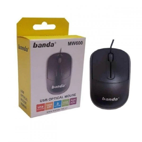ماوس Banda مدل MW600 در حالی که در دسته ماوس های نسبتا ارزان قرار دارد از طراحی بسیار زیبایی برخوردار میباشد دارای طراحی ارگونومیک سازگار با قوس دست بوده که در هنگام استفاده طولانی مدت از خستگی دست شما جلوگیری کرده، که همین خاصیت و طراحی سازگار با دست آن را برای طراحی، بازی و ... با کامپیوتر یا لپ تاپ بسیار مناسب مینماید. حسگر ماوس از نوع اپتیکال با دقت بسیار بالا میباشد. نوع اتصال ماوس باسیم و بوسیله پورت USB بوده و دارای 3 کلید است.