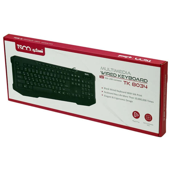 کیبورد تسکو مدل TK 8034 یک صفحهکلید سیمی و فولسایز است که با طراحی ارگونومیک، کلیدهای نرم و ساختار مقاوم، یک گزینهی عالی برای کاربران اداری، خانگی، دانشجویان و کارمندان محسوب میشود. این مدل با بهرهگیری از متریال باکیفیت و طراحی مهندسیشده، تجربهای راحت و بدون خستگی را در هنگام تایپ طولانیمدت ارائه میدهد. کیبورد TK 8034 از طریق کابل USB با طول ۱.۸ متر به سیستم متصل میشود و سازگار با تمامی نسخههای ویندوز است. این مدل دارای ۱۱۵ کلید استاندارد و ۲۱ کلید میانبر شامل ۱۱ کلید مالتیمدیا و ۱۰ کلید سری F است که باعث افزایش سرعت دسترسی به عملکردهای ضروری میشود. همچنین نشانگرهای LED برای کلیدهای Caps Lock و Num Lock، وضعیت صفحهکلید را مشخص میکنند. با بدنهی مقاوم از پلاستیک ABS، این کیبورد در برابر استفادهی طولانیمدت دوام بالایی دارد. پایههای ضد لغزش و قابل تنظیم، از حرکت ناخواستهی کیبورد جلوگیری کرده و تایپ را آسانتر میکند. علاوه بر این، عمر ضربهپذیری کلیدها تا ۱۰ میلیون کلیک تضمین شده است که نشان از دوام بالای این مدل دارد. کیبورد TK 8034 با قابلیت اتصال Plug & Play، نیازی به نصب نرمافزار ندارد و بلافاصله پس از اتصال به سیستم، آمادهی استفاده خواهد بود. اگر به دنبال یک کیبورد سیمی با عملکرد روان، طراحی راحت و امکانات کامل هستید، تسکو مدل TK 8034 یکی از بهترین گزینههای موجود در بازار است.