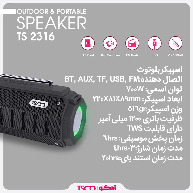 اسپیکر بلوتوثی تسکو مدل TS 2316